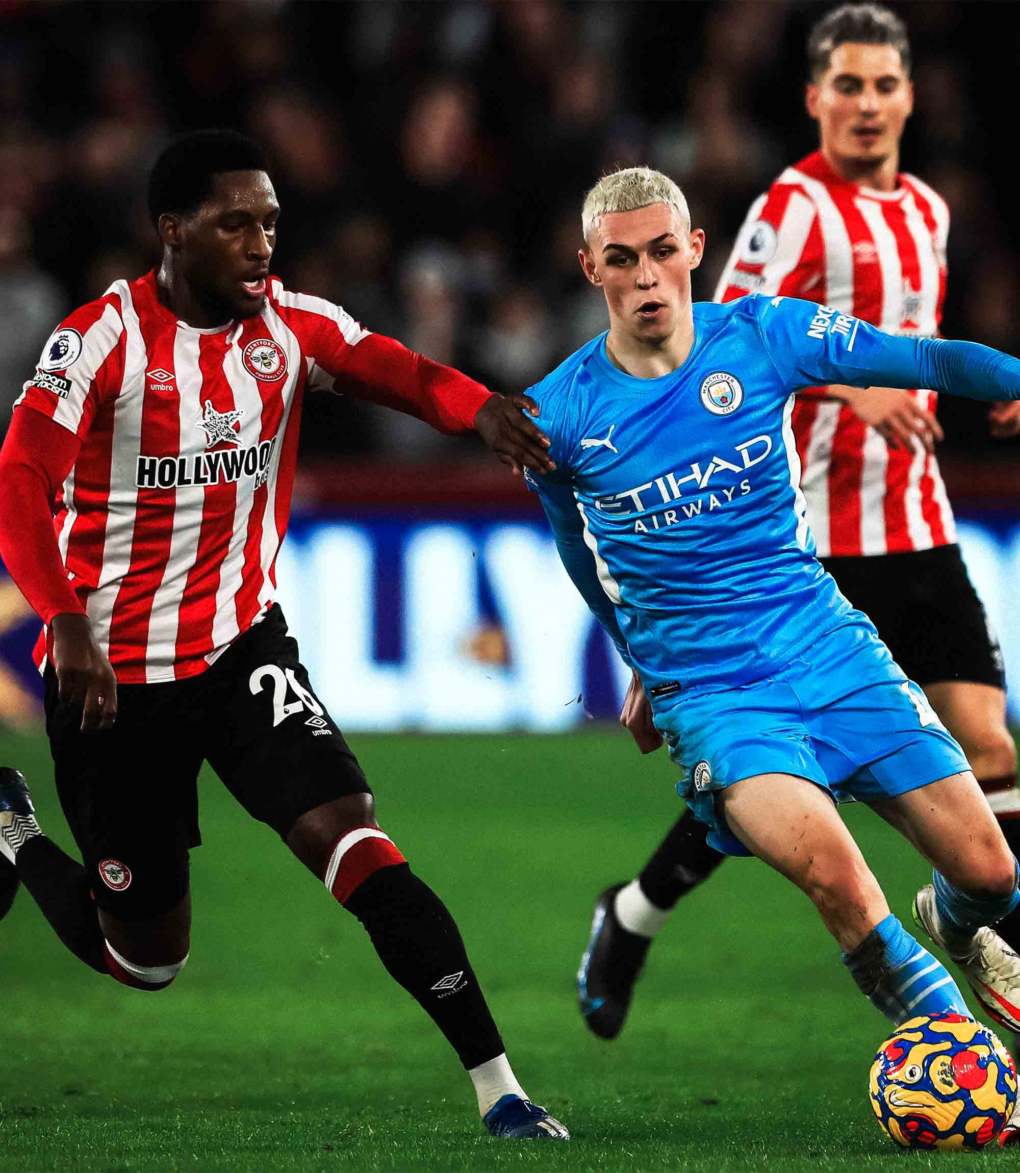本赛季首回合交锋曼城客场1-0击杀布伦特福德,菲尔-福登攻入全场唯一进球。